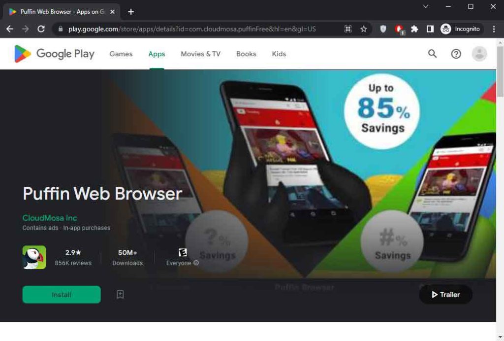 - Puffin Browser – This browser uses cloud servers that improve page loading speed and end-to-end encryption to safeguard the data and online activities.
